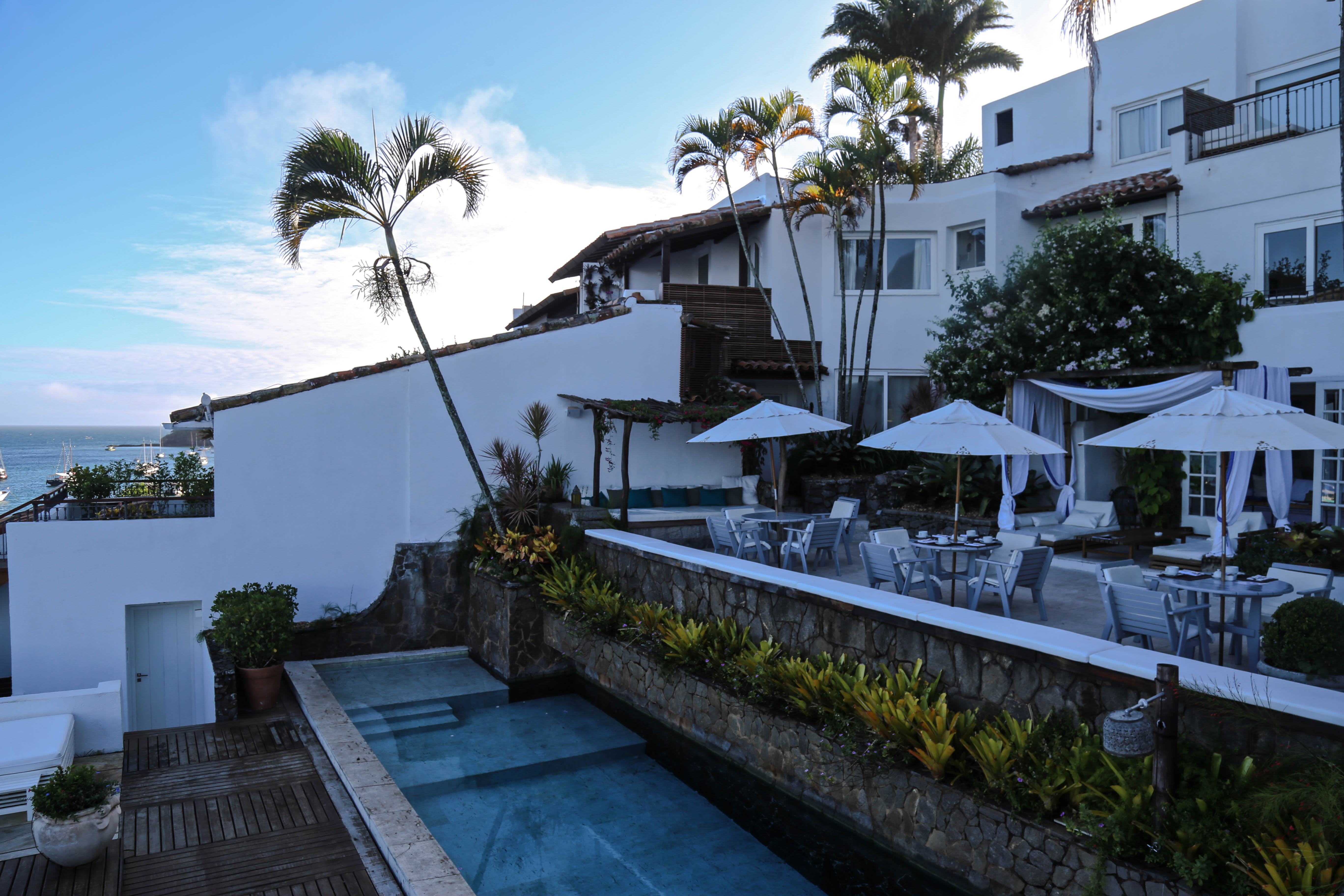 Pour notre séjour, nous avons porté notre choix sur l’hôtel spa Casas Brancas, avec la master room qui possède sa propre terrasse et un petit bassin d’eau pour se rafraichir entre deux bronzettes, et nous n’avons pas été déçus ! Tout droit sorti d’un magazine de décoration un peu fancy, l’hotel offre une vue à couper le souffle sur toute la baie. Et leur restaurant ? un délice !