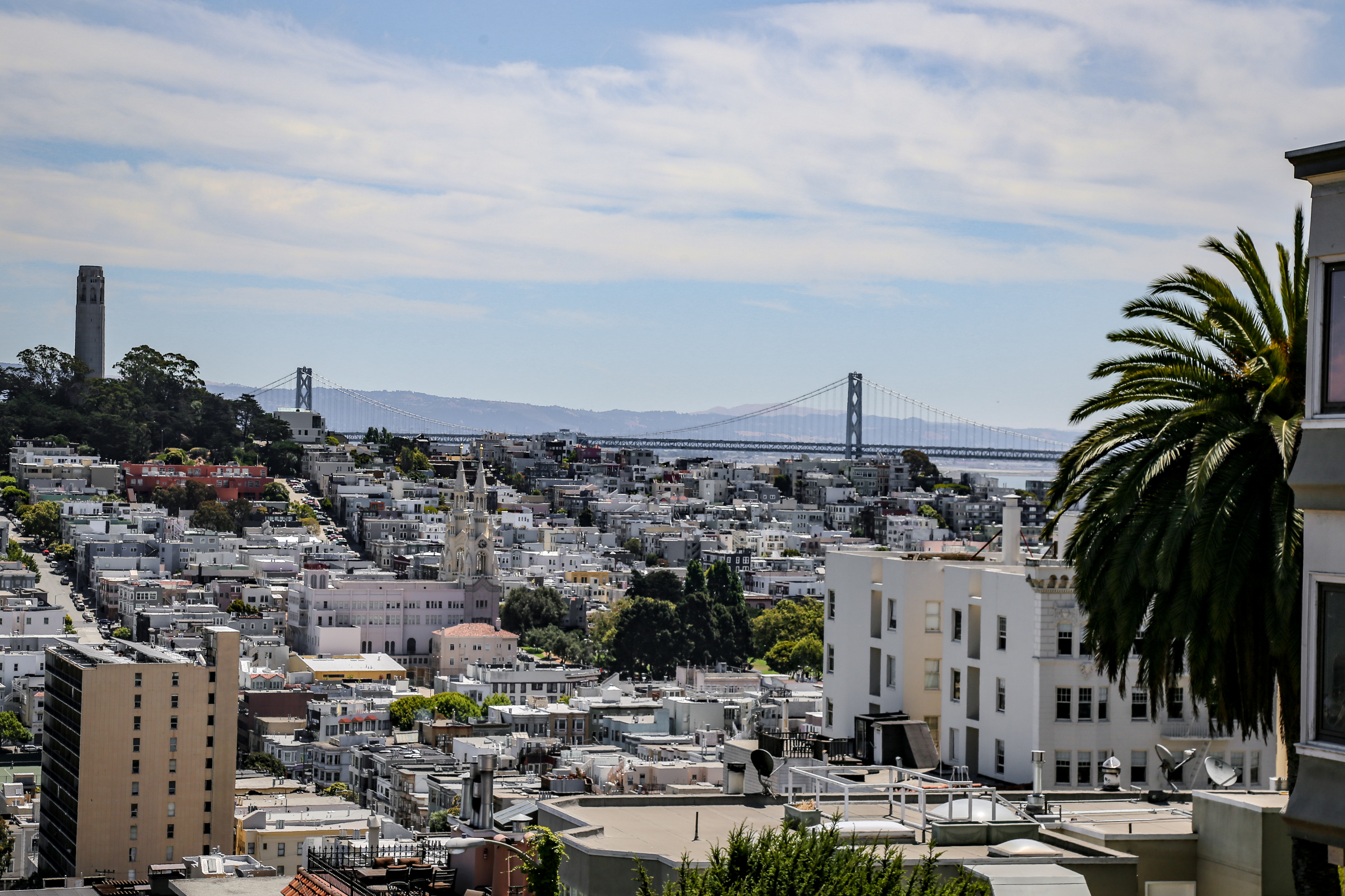 Située au sommet de Telegraph Hill (la plus haute colline de la ville), la Coit Tower offre une vue imprenable sur San Francisco, un panorama à 360 degrés. Si vous ne souhaitez pas payer ou que l’attente est trop longue vous pourrez quand même profiter d’une belle vue au pied de la tour (mais je vous assure que c’est encore mieux d’en haut !). Descendez les escaliers de Telegraph Hill (Filbert Steps) pour avoir une chance d’apercevoir les fameux perroquet de San Francisco. Il vous suffit ensuite de remonter Lombard Street sur quelques blocs pour tomber nez à nez avec la partie la plus tortueuse (et la plus célèbre) de la rue entre Hyde et Leavenworth.