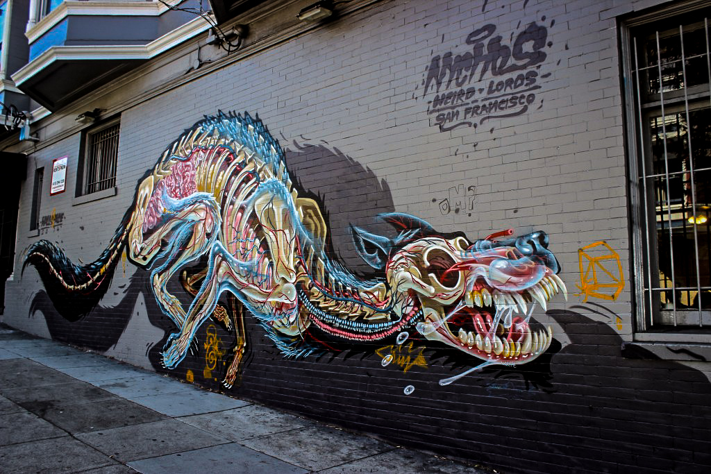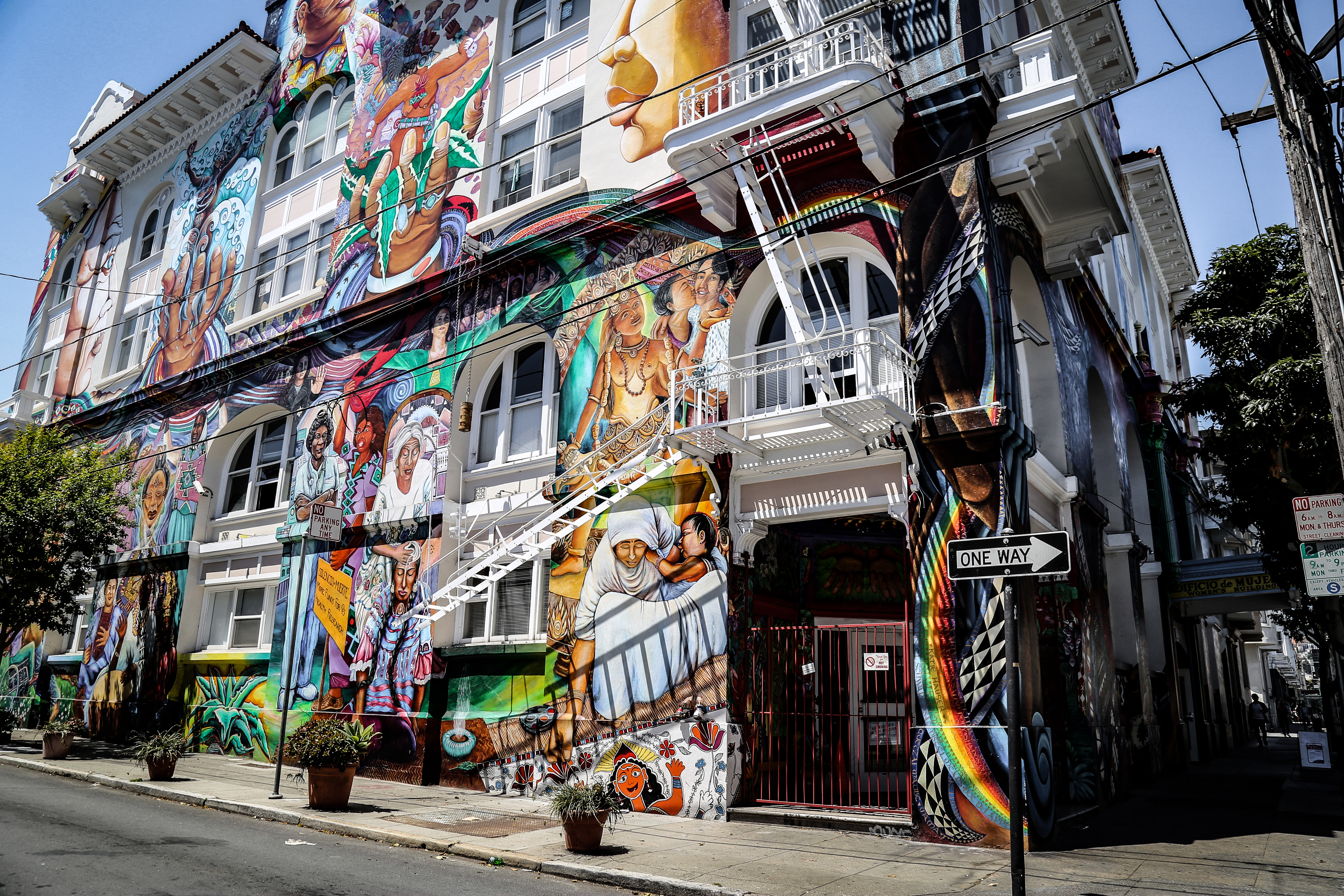 Le street art est présent partout dans le quartier mexicain que ça soit en fresques éphémères au sol ou sur des murs entiers consacrés aux oeuvres de rue. Des fresques en constante évolution aux pochoirs sur les trottoirs pensez à regarder autour de vous et bien ouvrir l’oeil pour découvrir des pépites. Commencez la découverte du quartier par la petite rue de Clarion Alley pour admirer les derniers street art, descendez ensuite Valencia Street jusqu’au Women’s building, un bâtiment haut en couleur. Si vous voulez faire comme les locaux prenez quelque chose à manger dans le coin ou une glace chez bi-rite et posez vous au Dolores Park pour manger dans l’herbe avec vue sur la ville.