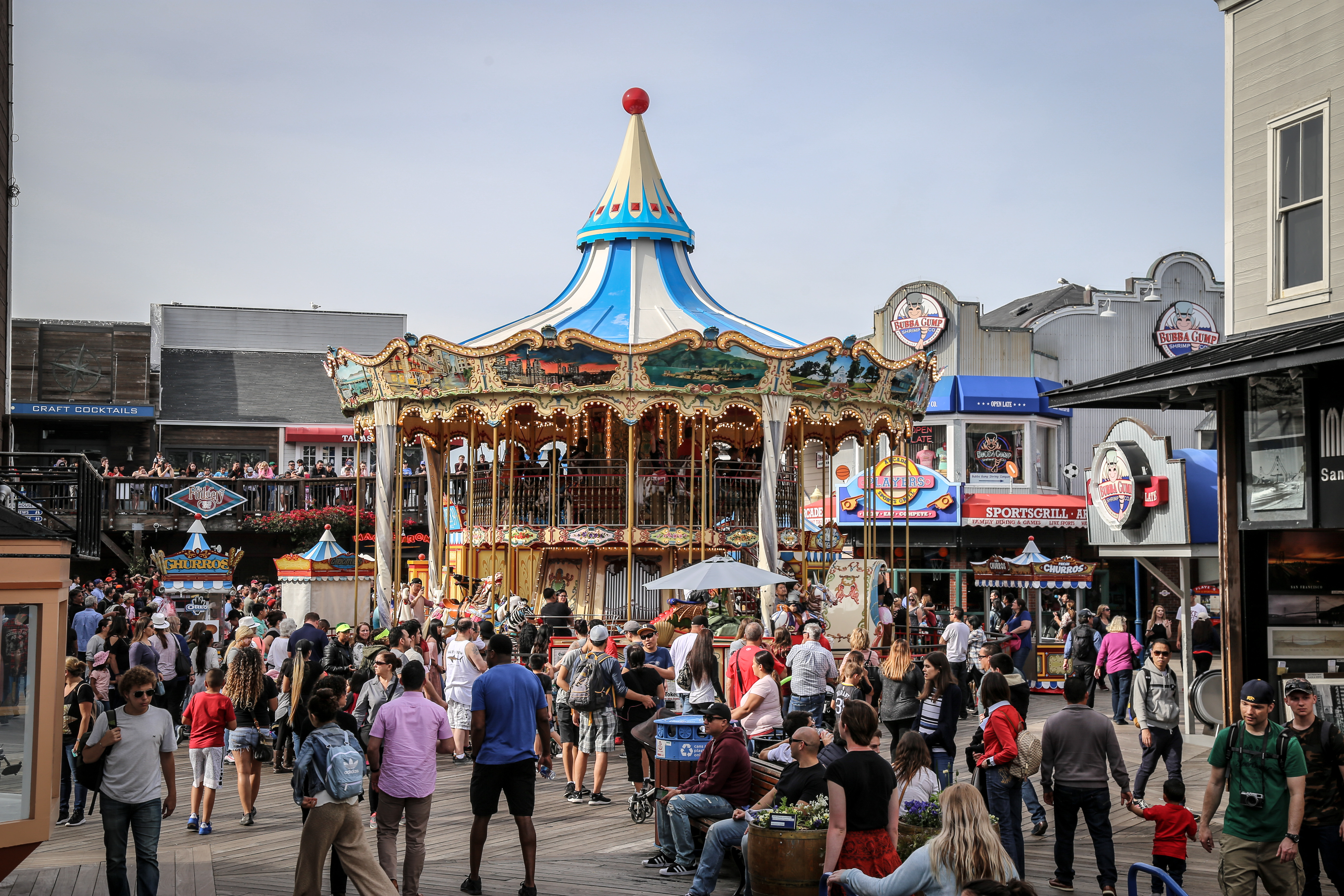 - Pier 39 : La nourriture ne sera pas ouf mais vous serez pile dans le thème « parc d’attraction » de Fisherman’s : Wipeout Bar et Grill, Bubba Gump Shrimp, Hard Rock Café, les restaurants sont nombreux sur la jetée. Si vous ne voulez pas vous poser vous pouvez même prendre un hot dog ou un bretzel géant à un vendeur ambulant.