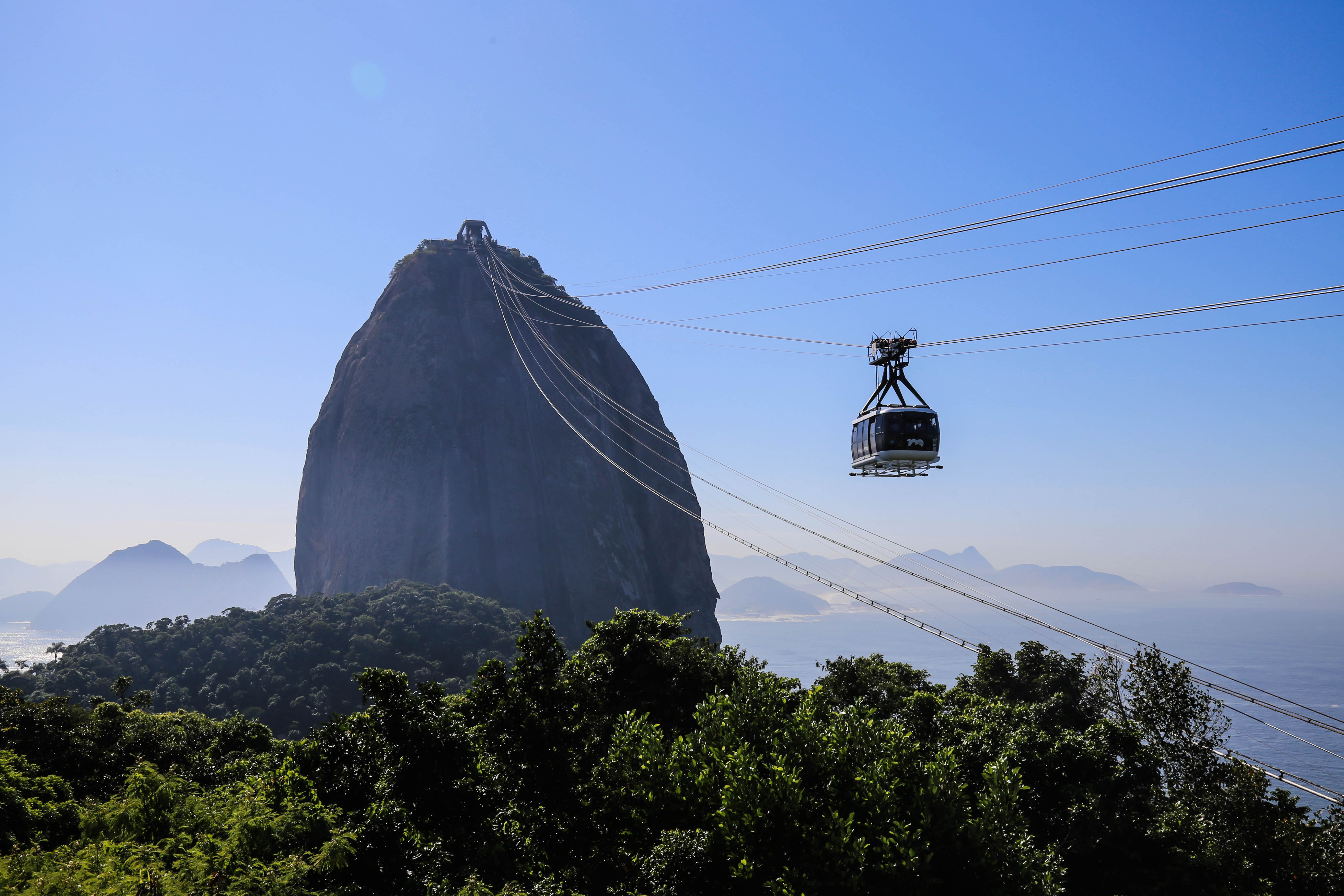 Culminant à plus de 396 mètres, le Pão de Açúcar offre une vue panoramique parfaite de la ville et notamment sur la baie de Botafogo . L’ascension se fait en deux étapes avec un premier arrêt du téléphérique au sommet de Morro da Urca (à 220 mètres d’altitude), puis une deuxième ascension jusqu’au Pain de sucre avec son petit parc.