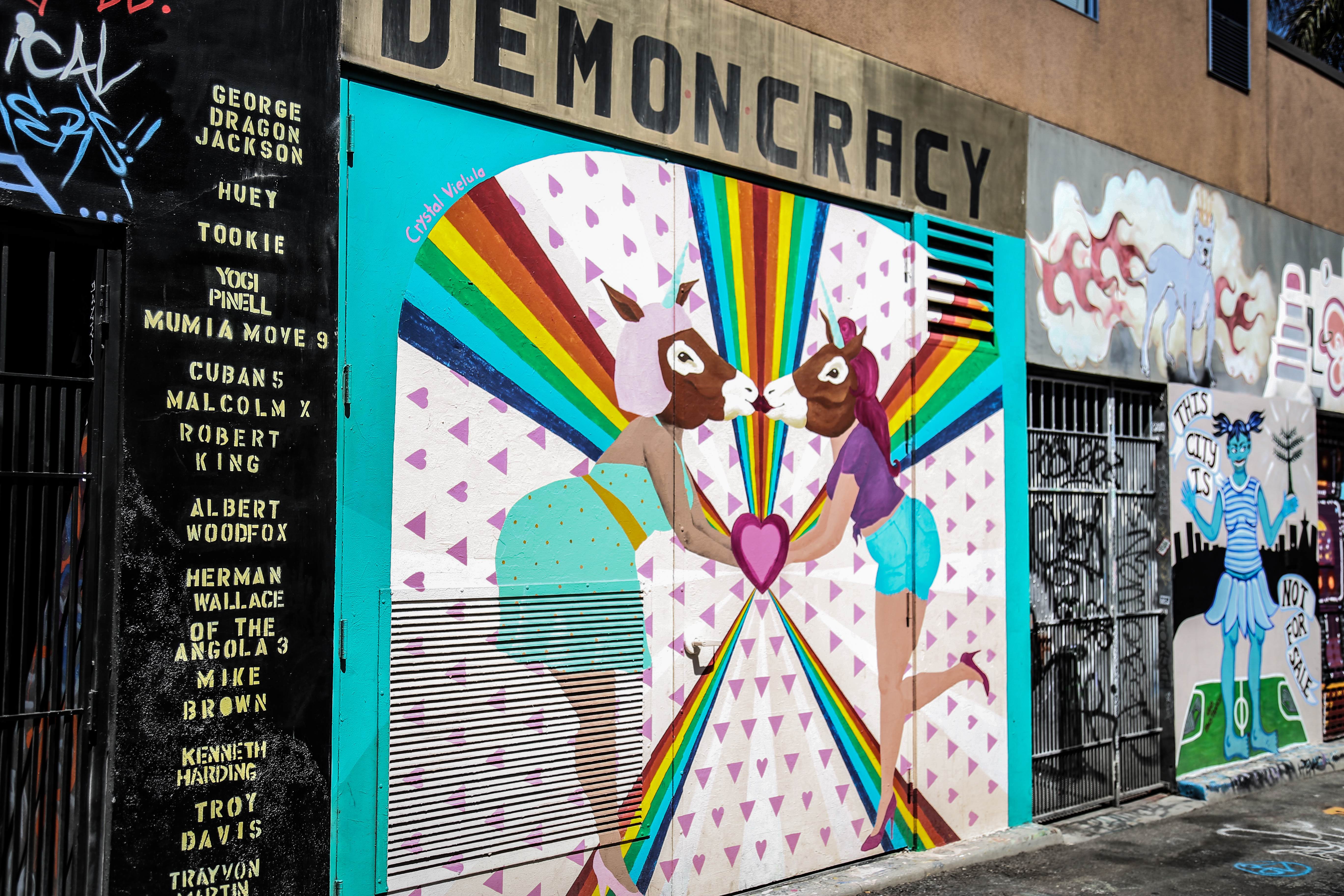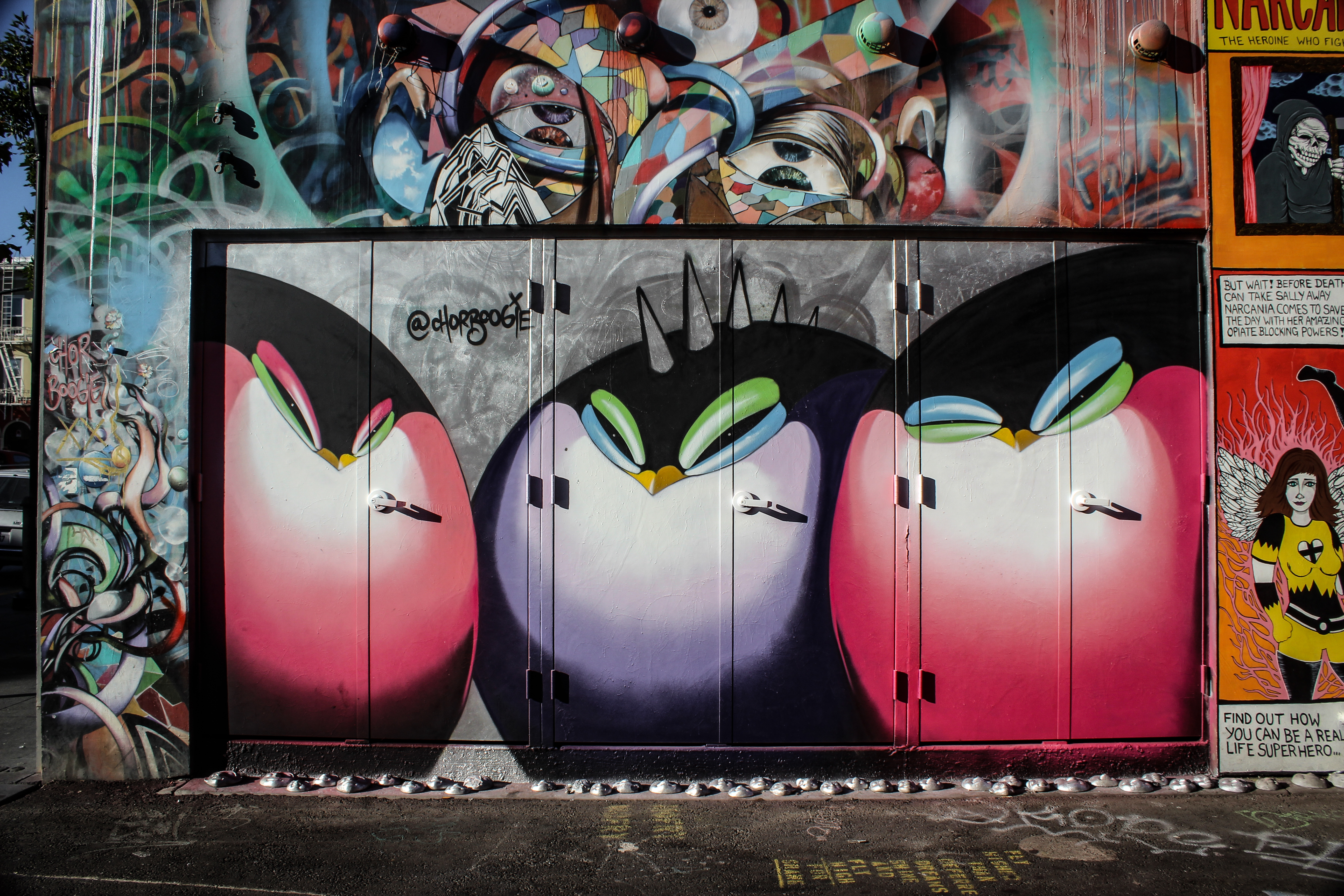 Le street art est présent partout dans le quartier mexicain que ça soit en fresques éphémères au sol ou sur des murs entiers consacrés aux oeuvres de rue. Des fresques en constante évolution aux pochoirs sur les trottoirs pensez à regarder autour de vous et bien ouvrir l’oeil pour découvrir des pépites. Commencez la découverte du quartier par la petite rue de Clarion Alley pour admirer les derniers street art, descendez ensuite Valencia Street jusqu’au Women’s building, un bâtiment haut en couleur. Si vous voulez faire comme les locaux prenez quelque chose à manger dans le coin ou une glace chez bi-rite et posez vous au Dolores Park pour manger dans l’herbe avec vue sur la ville.