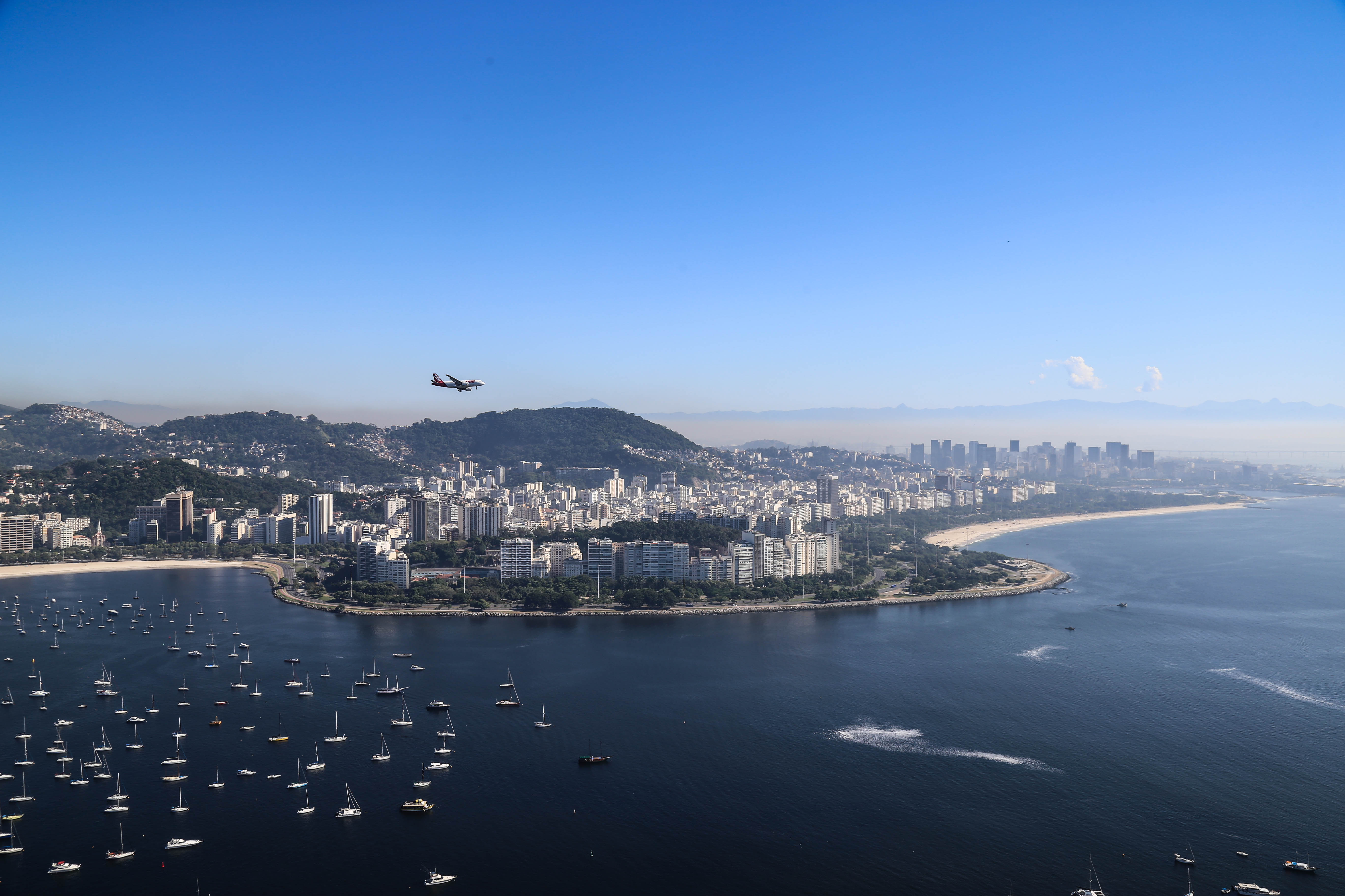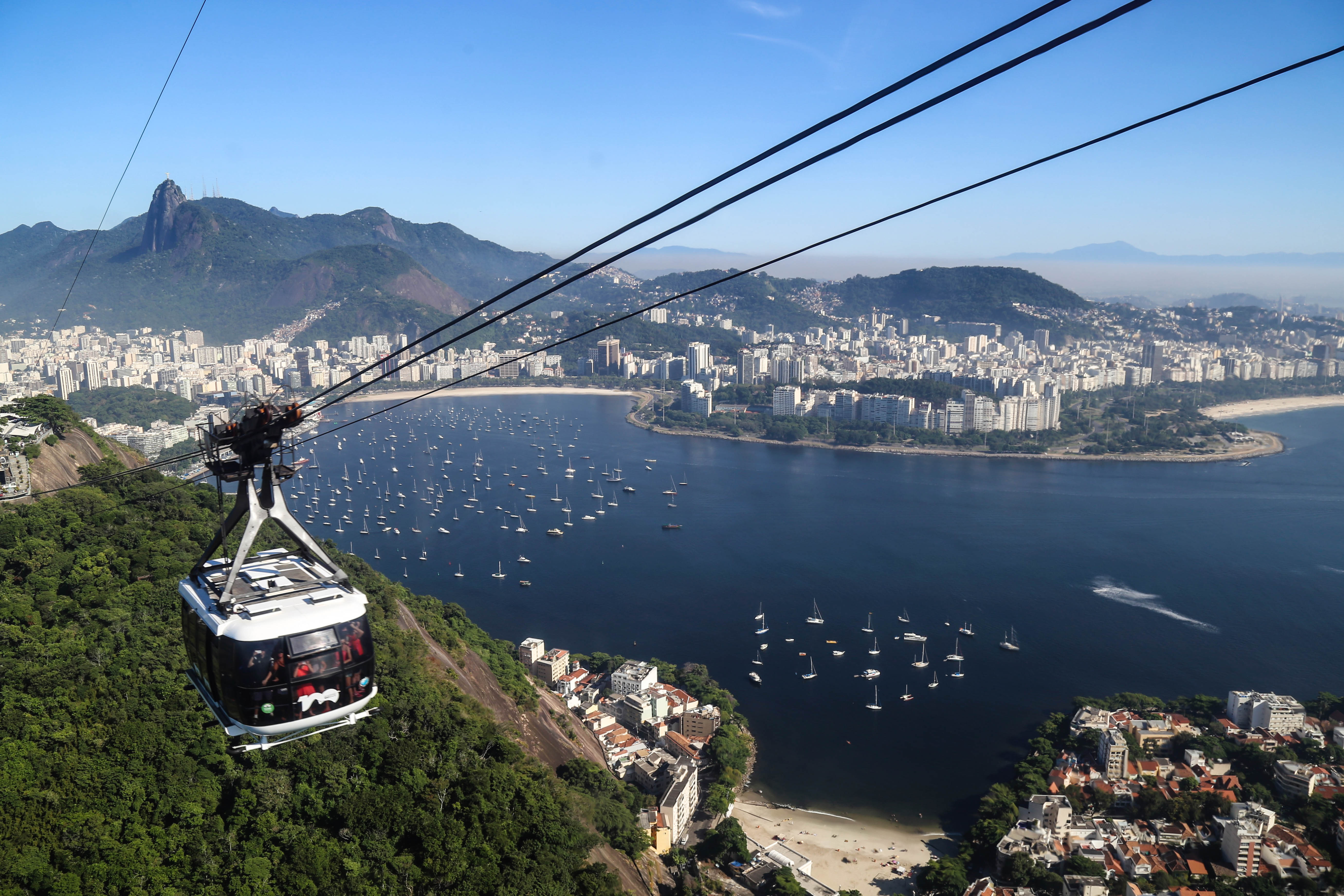 Culminant à plus de 396 mètres, le Pão de Açúcar offre une vue panoramique parfaite de la ville et notamment sur la baie de Botafogo . L’ascension se fait en deux étapes avec un premier arrêt du téléphérique au sommet de Morro da Urca (à 220 mètres d’altitude), puis une deuxième ascension jusqu’au Pain de sucre avec son petit parc.